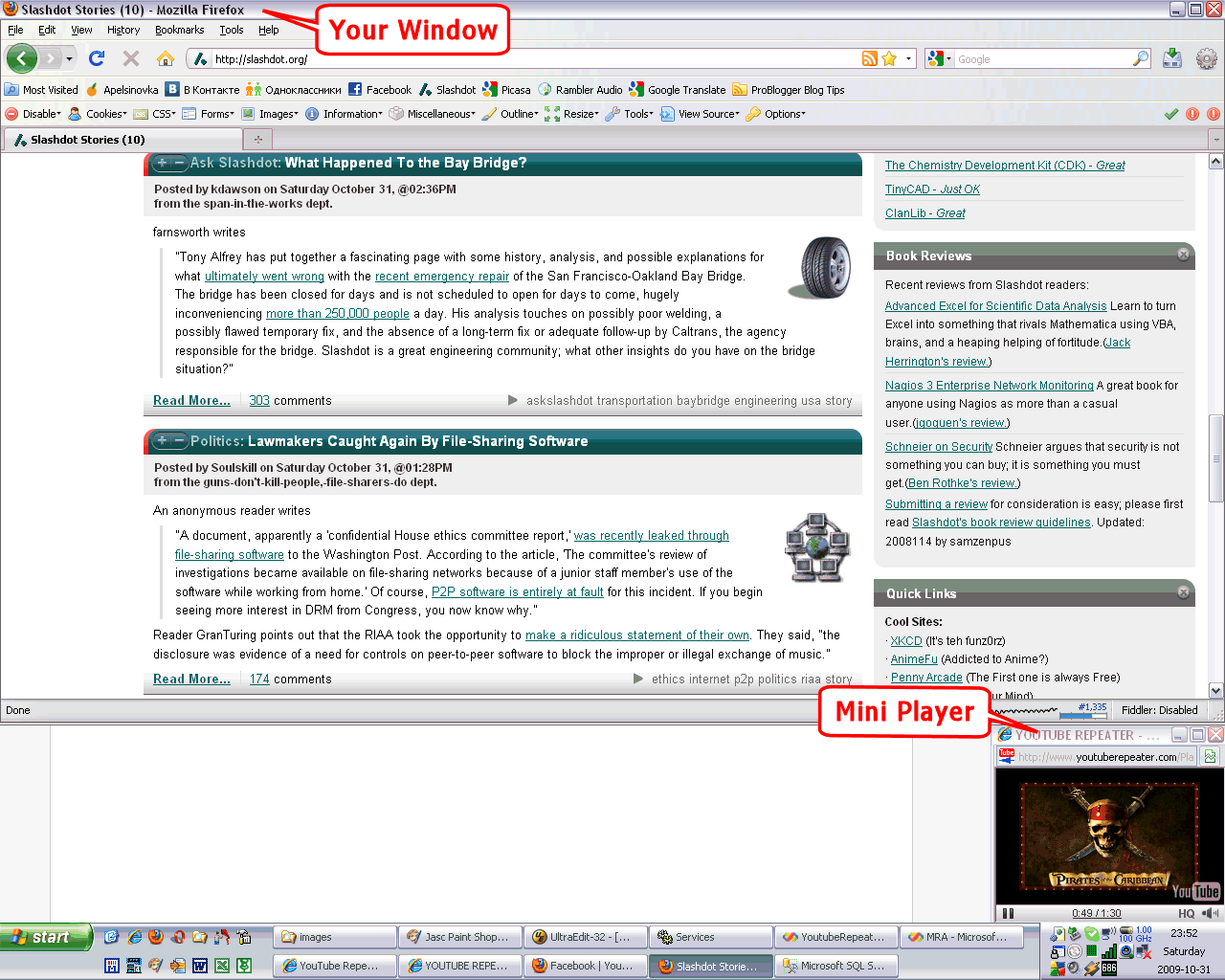 Our Mini YouTube Player has nothing but your video and tiny playback controls. It is the best way to keep playing your video in the background, or on a small window while still working on other things or browsing the web.